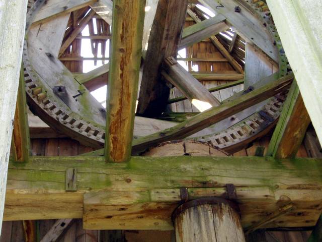 Zachowane resztki mechanizmu we wnętrznościach wiatraka.